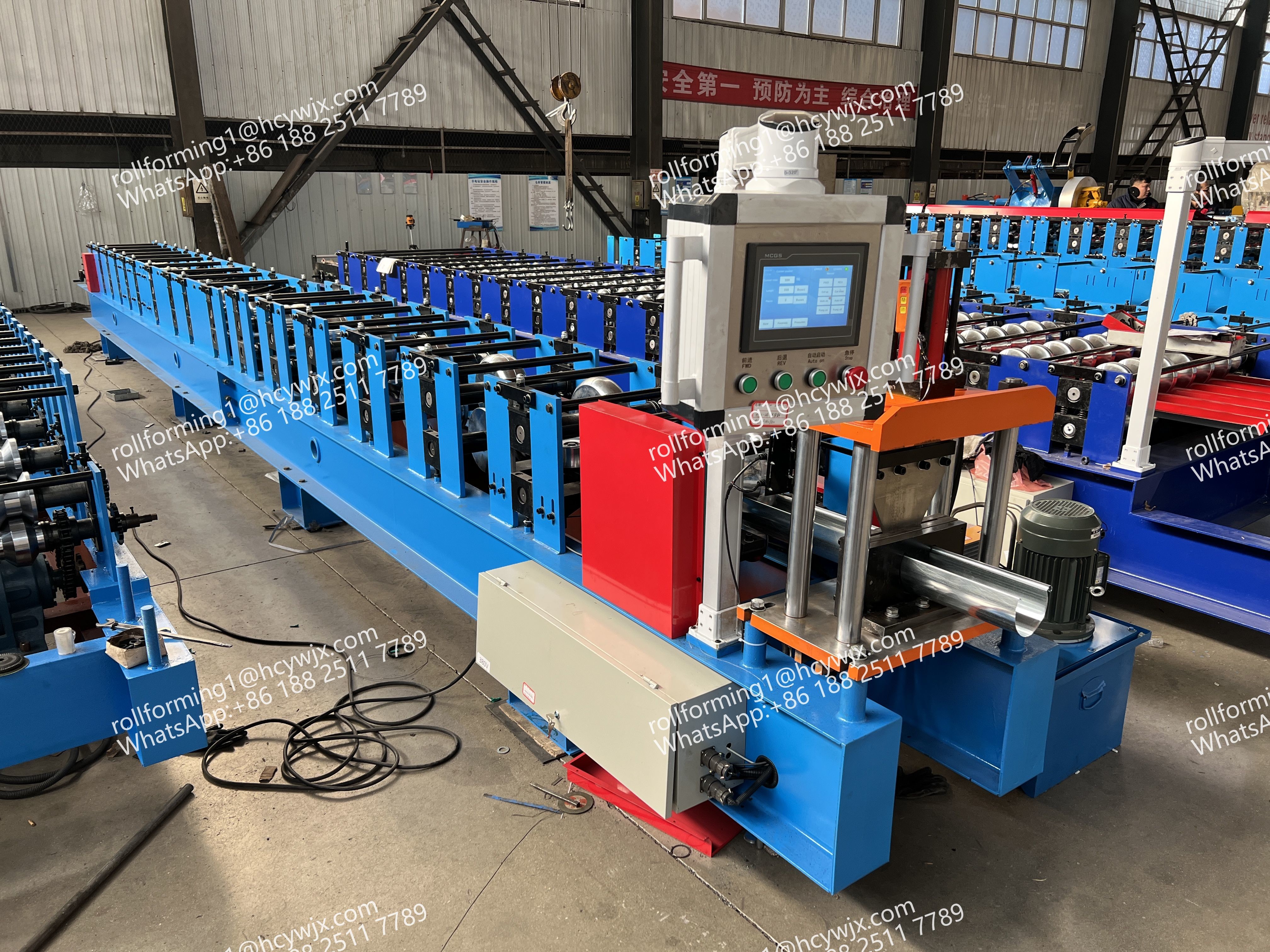 System sterowania maszyną do formowania rolki rynnowej jest napędzany przez PLC (Programmable Logic Controller) i przetwornik.Ta zaawansowana technologia zapewnia precyzyjną kontrolę całego procesu formowania rolkiSystem sterowania PLC umożliwia również łatwą personalizację profili rynsztoka, dzięki czemu nadaje się do różnych konstrukcji rynsztoka.