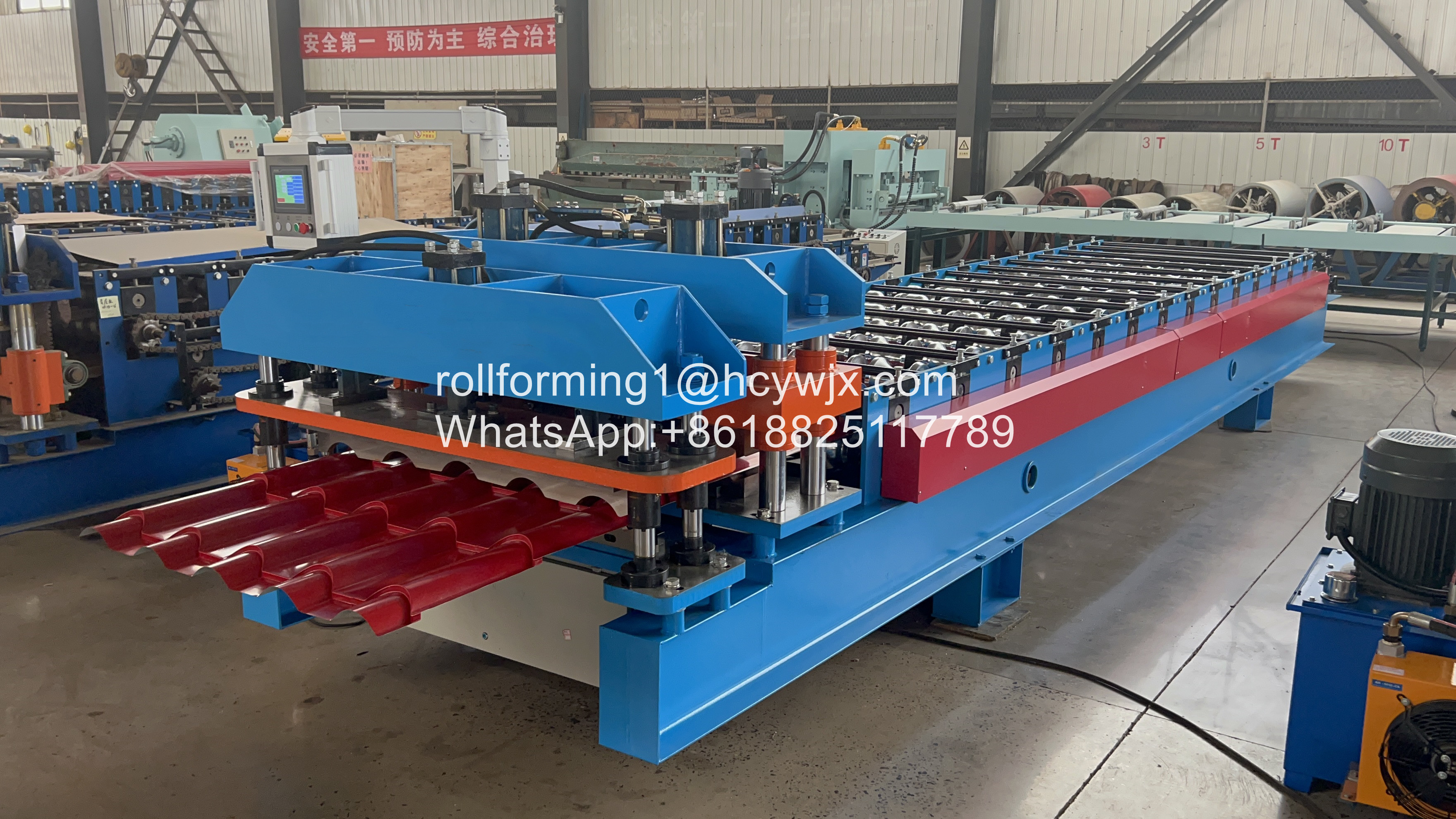 Ten model maszyny jest eksportowany na rynek europejski. Szerokość podawania wynosi 1250 mm, a szerokość okładki 1050, jest idealnie nałożona. Oszczędzaj materiał i wygląd jest piękny. Urządzenie tnące różni się od normalnej maszyny do formowania rolek przeszklonych, jego krzywa cięcie, odpowiednio przyciąć kształt płytki.