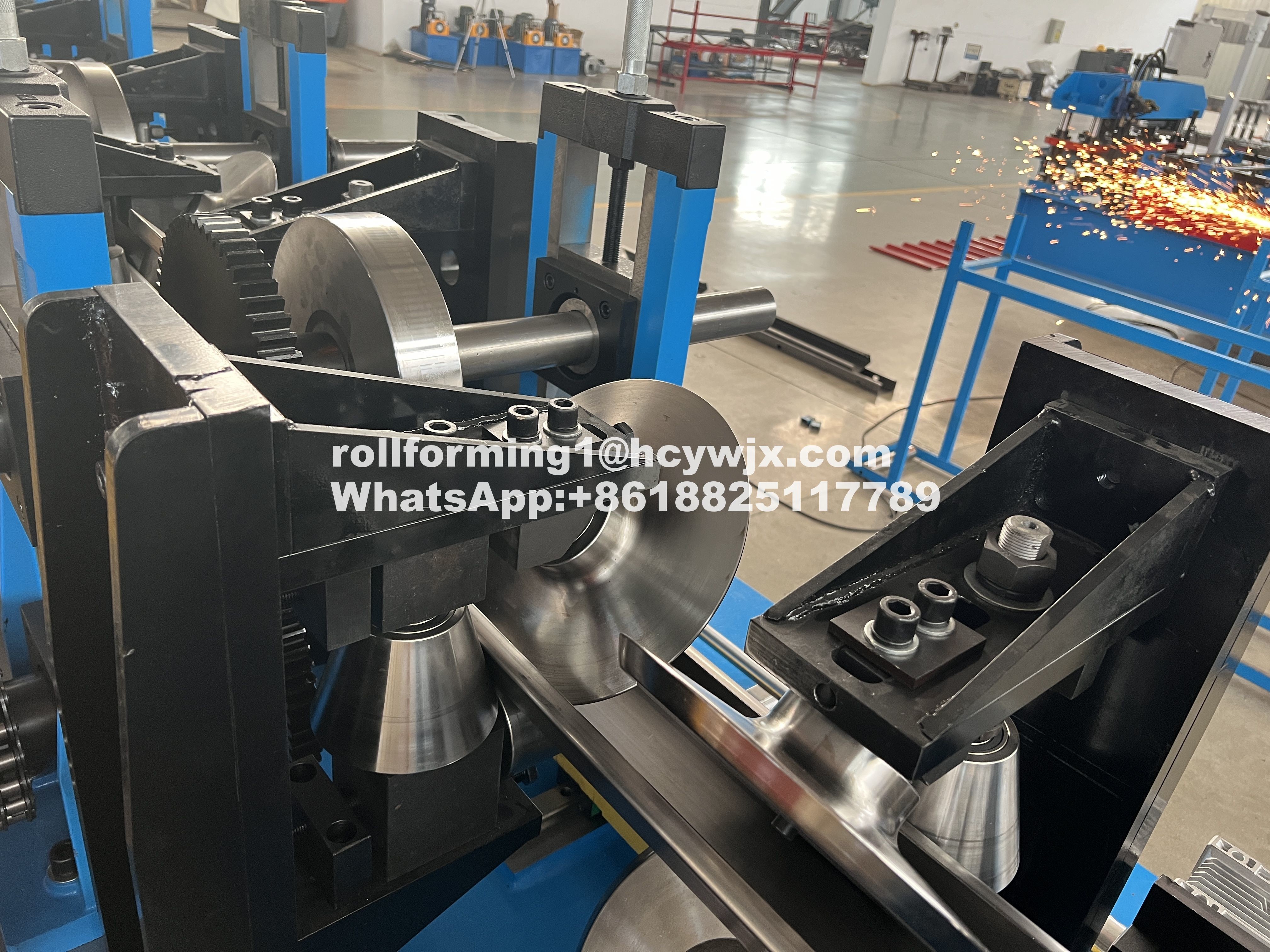 Przeprowadź cewkę do prawidłowej pozycji i przekaż do maszyny do formowania rolki. Platforma karmienia, zapewnienie płynnego i precyzyjnego podawania materiału. Platforma stalowa, dwa rolki, blok zatrzymania pozycji. Węzeł jest kierowany w prawidłowej pozycji i przekazywany do formowania rolki. |